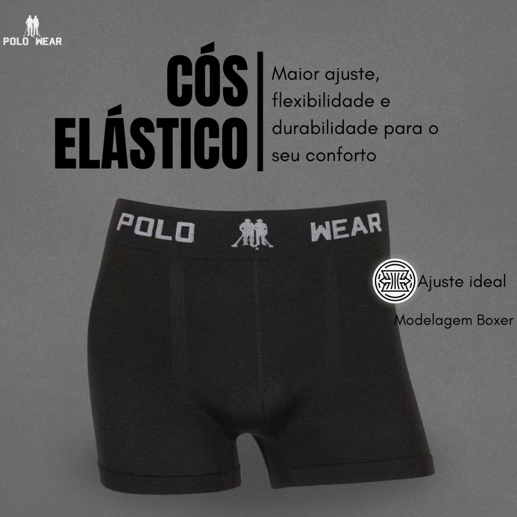 DETALHES DO PRODUTO • Modelagem Boxer • Acabamento cós sem costura • Cós largo com logo Polo Wear • Poliéster e Elastano • Toque suave. TABELA DE MEDIDAS: (Sem Esticar) P: (34/36) Cintura: 60cm / Quadril: 78cm / Comprimento: 28cm / Gancho: 24cm / Coxa: 42cm M: (38/40) Cintura: 68cm / Quadril: 82cm / Comprimento: 29cm / Gancho: 24cm / Coxa: 46cm G: (42/44) Cintura: 70cm / Quadril: 82cm / Comprimento: 29cm / Gancho: 25cm / Coxa: 46cm GG: (46/48) Cintura: 74cm / Quadril: 94Cm / Comprimento: 32cm / Gancho: 26cm / Coxa: 52cm COMPOSIÇÃO: 93,89% Poliéster e 6,11% Elastano - A Cueca Polo Wear é uma peça básica, mas confortável, perfeita para o dia a dia. - É feita de tecido suave e confortável, de fibras sintéticas, que se adapta ao corpo sem marcar as roupas. - Além disso, a falta de estampas e detalhes adicionais torna a cueca Polo Wear uma escolha discreta e elegante. - Ela pode ser usada com calças de moletom, jeans ou qualquer outra peça de roupa, tornando-a uma escolha versátil para todos os dias. - Possui cos em elástico com a logo Polo Wear, sem costura, com toque macio e leve. PERGUNTAS FREQUENTES: O produto vem igual ao da foto? R: Sim, garantimos que o produto será idêntico à imagem, com fotos tiradas com cuidado. Qual tamanho fica bom para mim? R: Consulte nossa tabela de medidas na descrição do produto ou nas imagens para escolher o tamanho adequado. Vocês enviam no mesmo dia? R: Sim, enviamos pedidos no mesmo dia se realizados antes do horário de corte; pedidos feitos depois serão enviados no próximo dia útil. EXPOSIÇÃO PAULISTA - NOSSA FAMÍLIA VESTE A SUA! Somos uma empresa familiar com mais de 50 anos de tradição na confecção de roupas infantis e adultas no Paraná. Nosso compromisso é oferecer produtos de qualidade, acessíveis e atuais, sempre com foco na satisfação de nossos clientes. SKU: 117709