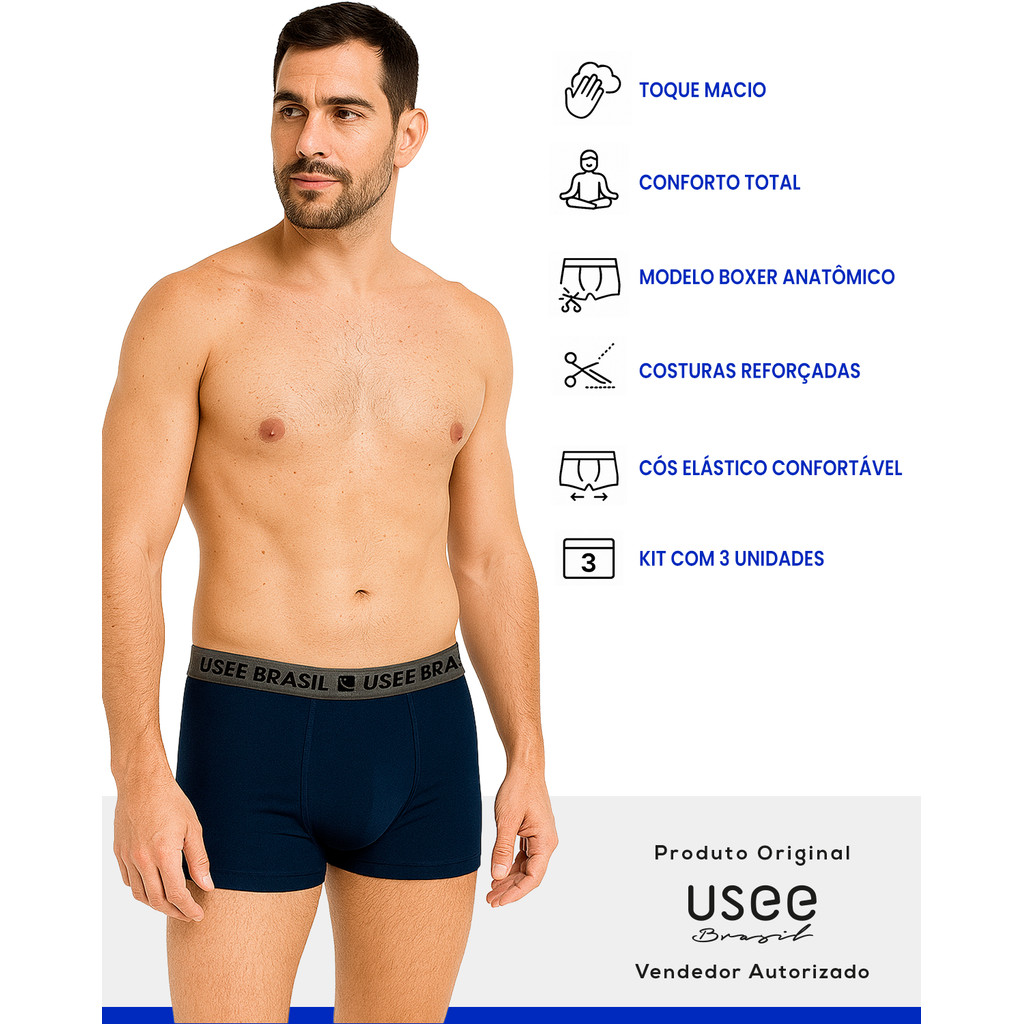 Kit 3 Cuecas Boxer Premium Usee Brasil Original