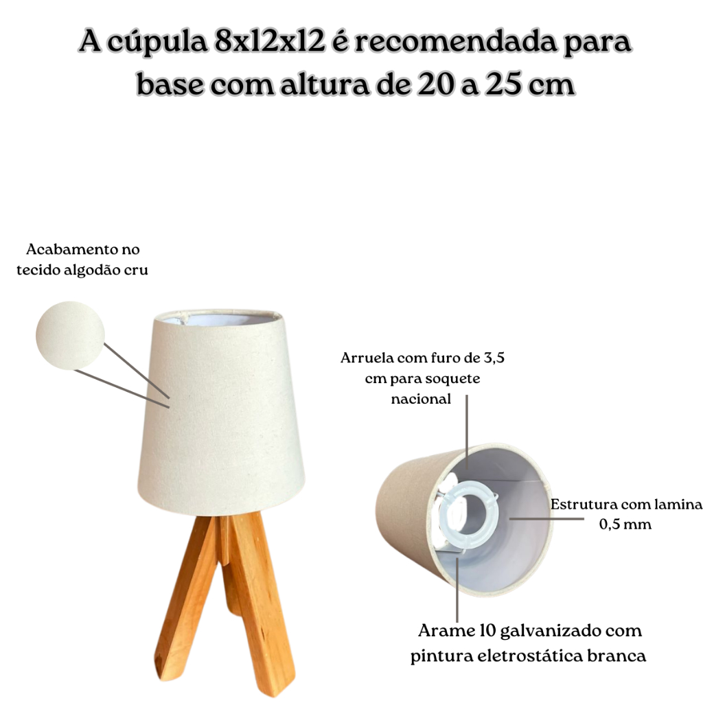 Kit 3 Cúpula De Abajur luminária Cone Tecido Algodão Acetato Soquete Nacional 8x12x12