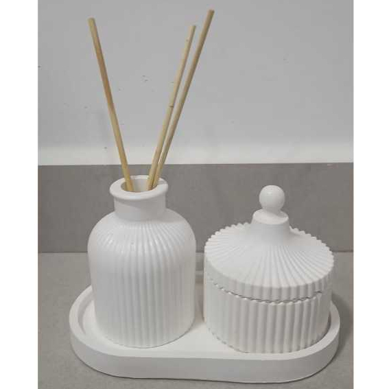 Kit 3 Decoração Minimalista Aromatizador, Bandeja e Porta Jóias.