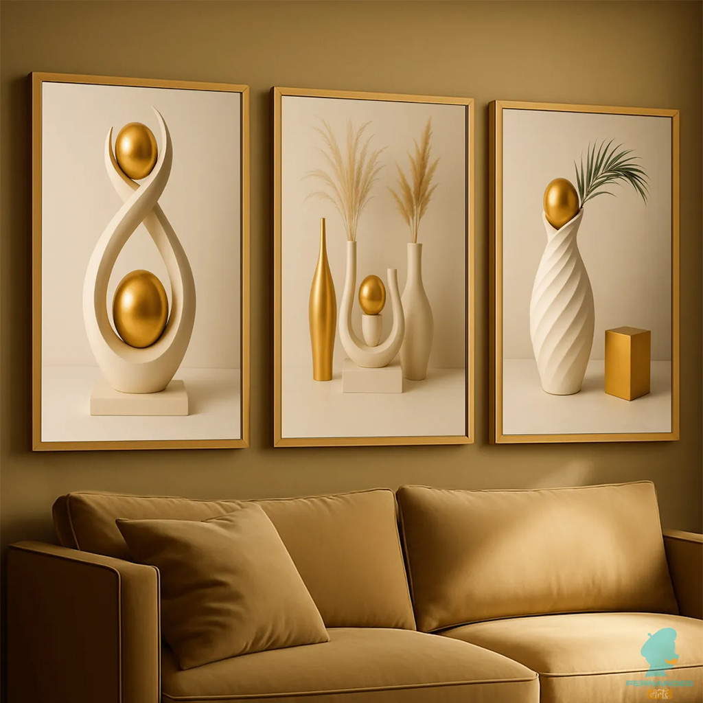 KIT 3 Decorative Picture Frame Modern Geometric Abstract Gold Sculpture Luxury Living Room Wall Decoration