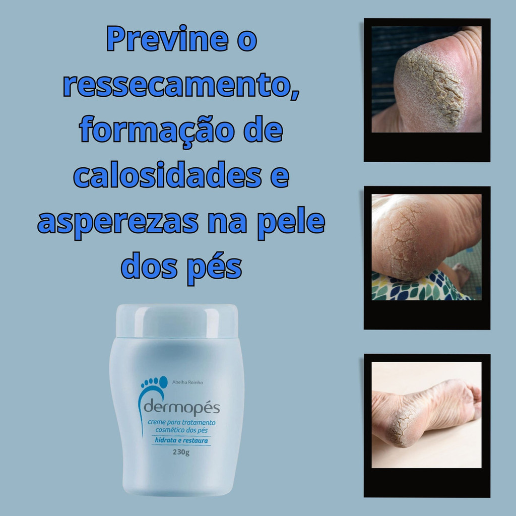 Kit 3 Dermopés Hidrata e Restaura 230ml Spa dos Pes Trata Rachaduras Previne Ressecamento Afina Abelha Rainha
