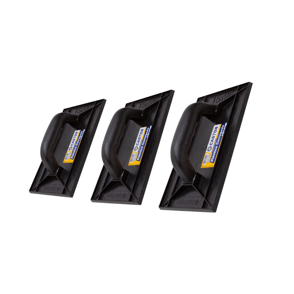 O kit contempla: 3 unidades Desempenadeira plástica PVC 15x26cm Corrugada Preta - Castor. A Desempenadeira plástica PVC 15 x 26 cm Corrugada Preta da Castor oferece praticidade e eficiencia durante o nivelamento e revestimento de superfícies, com massa fina ou grossa. CARACTERÍSTICAS Tipo de aplicação: Nivelamento e revestimento com argamassas. Aspectos: Resistente, não encharcam quando molhadas e não empenam. Sua base colmeia remove pedras e partículas do produto aplicado. Material da chapa: PVC. Cabo: Fechado. Diferencial: Leve, garante resultados excelentes com menor esforço. Característica adicional: Cabo ergonômico (muito confortável) e reforçado. Código do fabricante: 024 Limpeza e conservação: Após o uso, retire o excesso dos resíduos utilizados e lave a desempenadeira em água corrente. FERRAMENTAS QUE CONSTROEM O MUNDO Conceitos de resistência, qualidade e alta durabilidade traduzidos em uma única ferramenta! As desempenadeiras da Castor foram pensadas para oferecer alto desempenho e conforto para você. Tudo para facilitar a sua vida! SEGURANÇA Compre com segurança! Nossa equipe de suporte estará à disposição caso tenha algum problema ou dúvida. Aguardamos seu pedido!