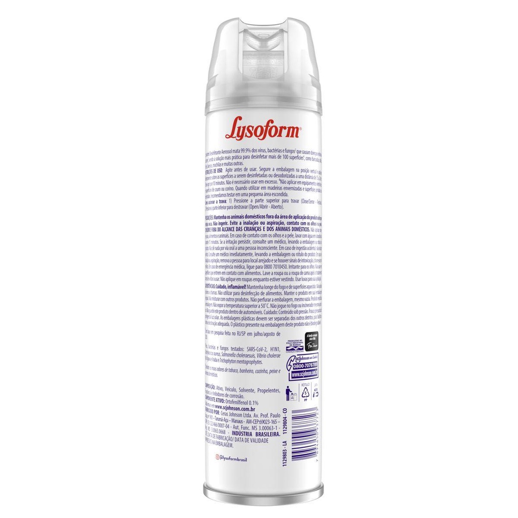 Kit 3 Desinfetante Lysoform Aerossol Uso Geral Original 360ml O Desinfetante Lysoform Aerosol auxilia a sua casa a ficar livre dos fungos que causam o mofo, germes e bactérias, e ainda desodoriza e higieniza o ambiente.Kit Contém 3 Desinfetante Lysoform Aerossol Uso Geral Original 360ml cada Compre Produtos Lysoform
