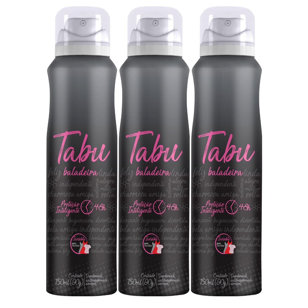 Kit 3 - Desodorante Aerosol Antitranspirante Tabu Baladeira 150ML