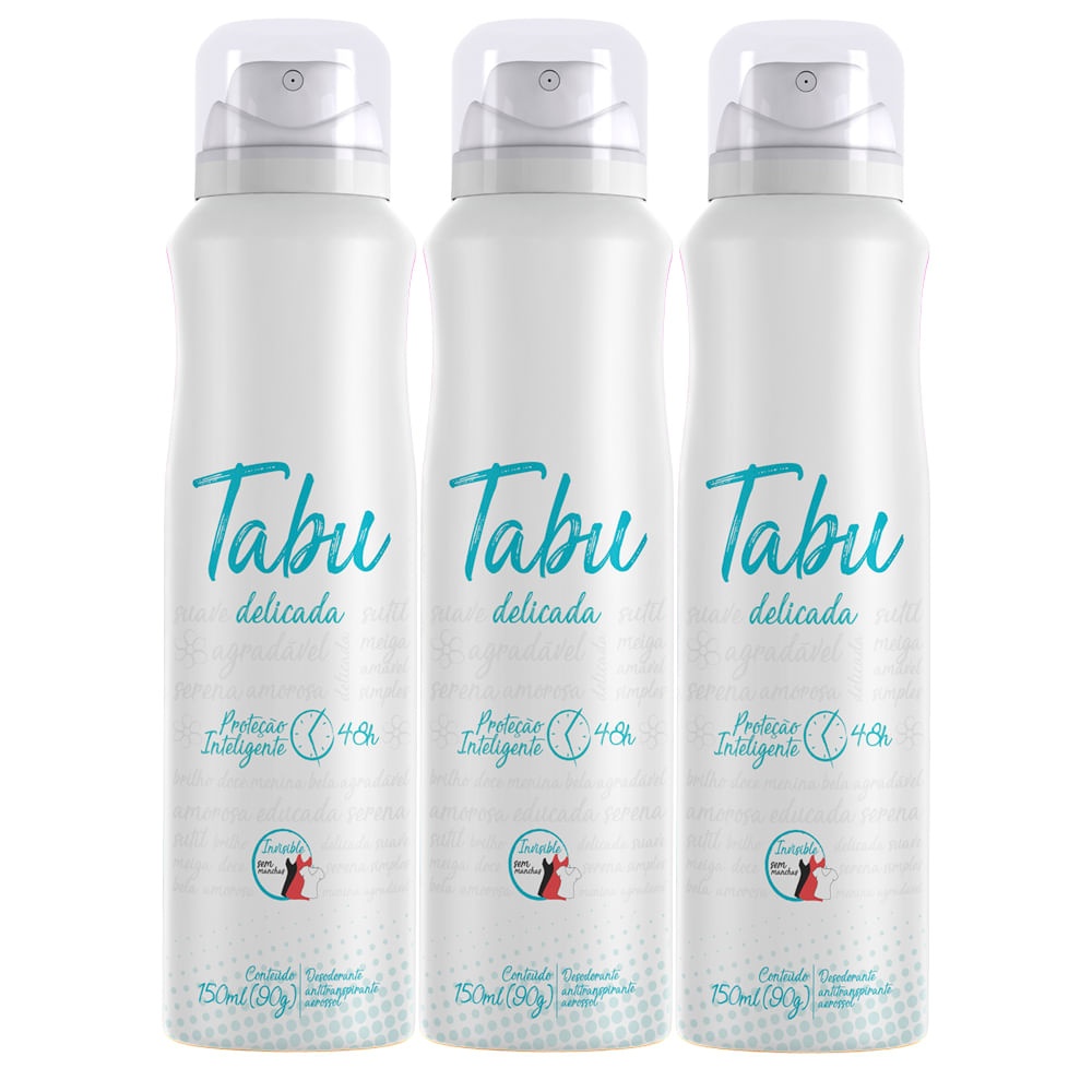 Kit 3 - Desodorante Aerosol Antitranspirante Tabu Delicada 150Ml