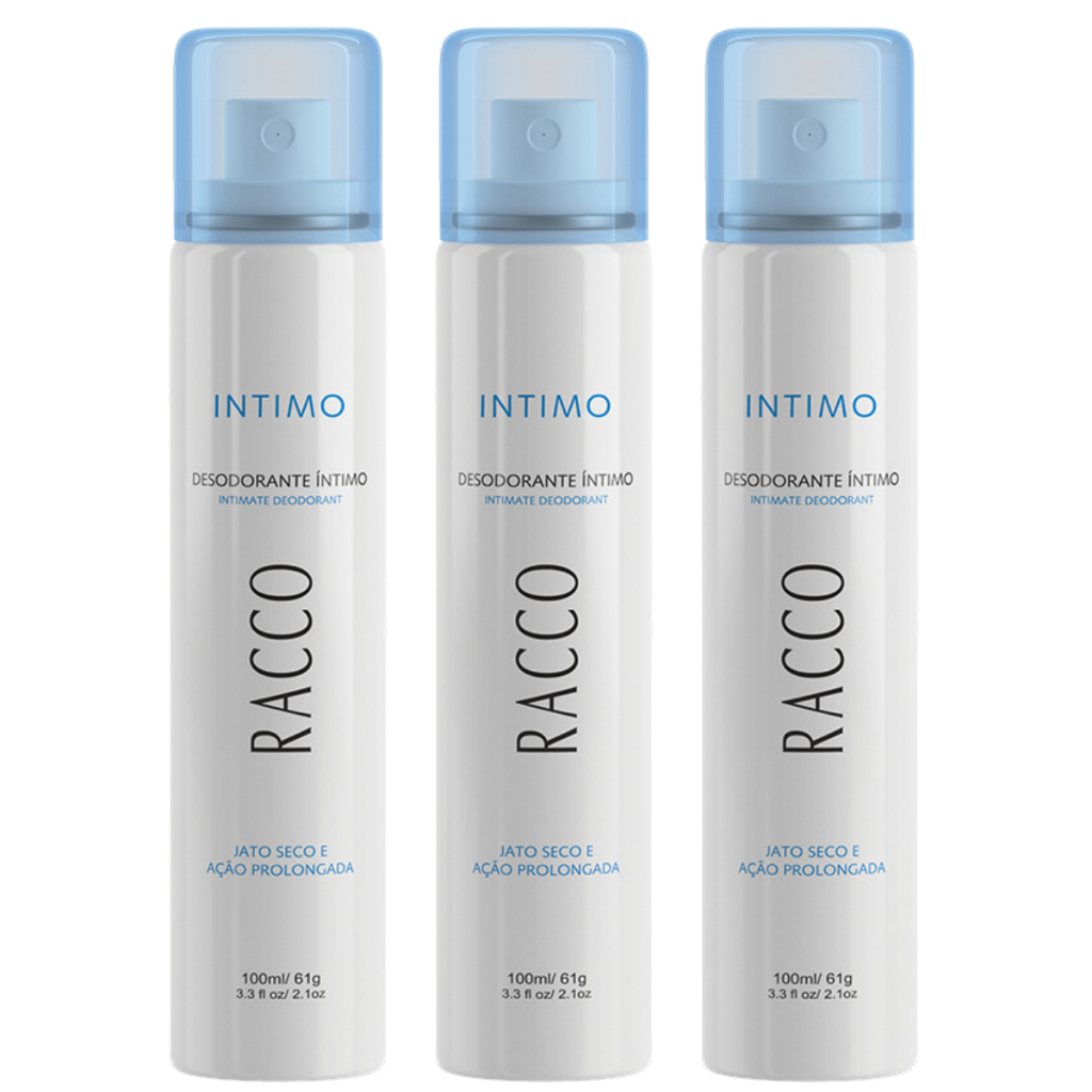 Kit 3 Desodorante Jato Seco Racco Íntimo Unissex Feminino Masculino Spray Ação Prolongada Original