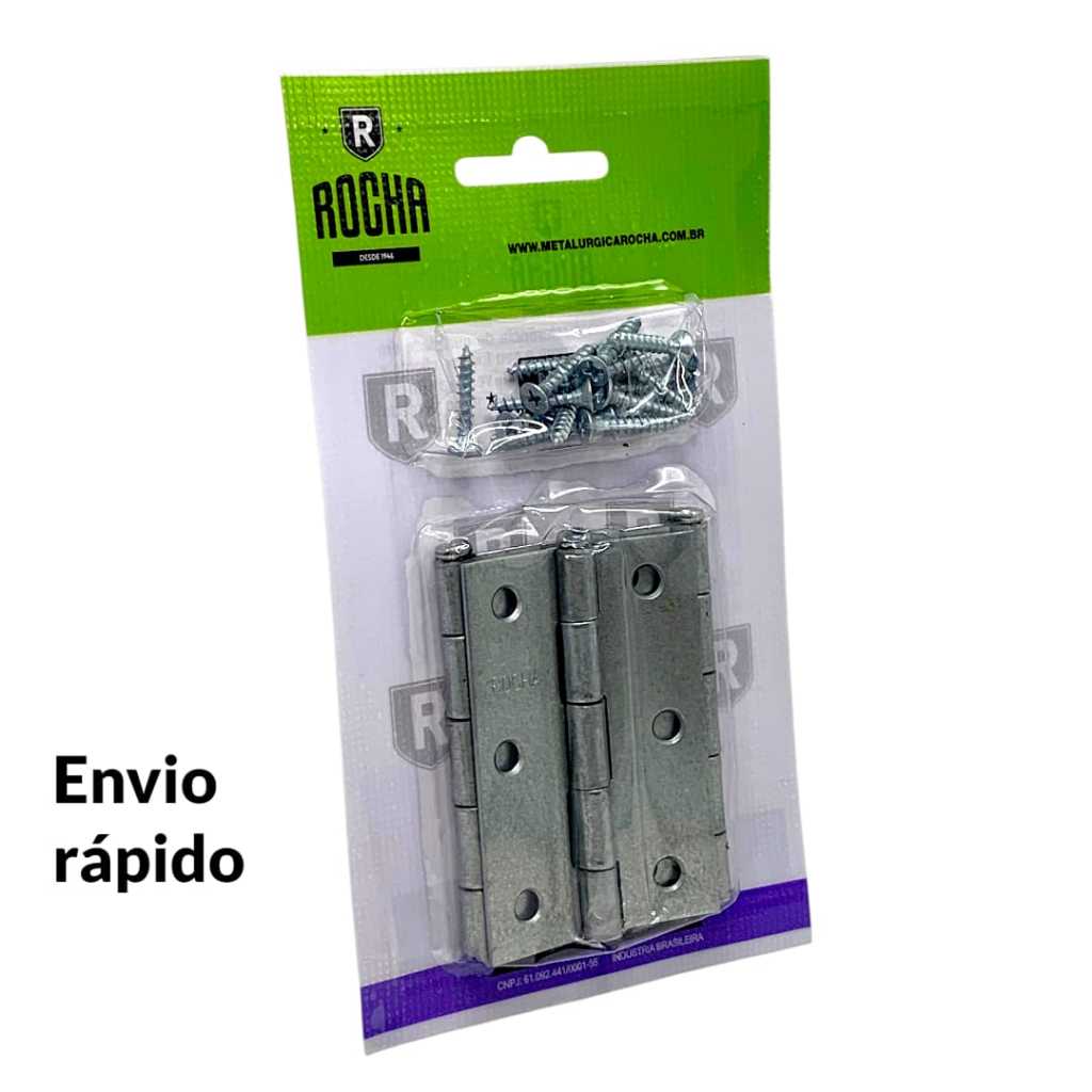 Kit 3 Dobradiças zincadas Rocha de 3 polegadas para portas. Com parafusos.