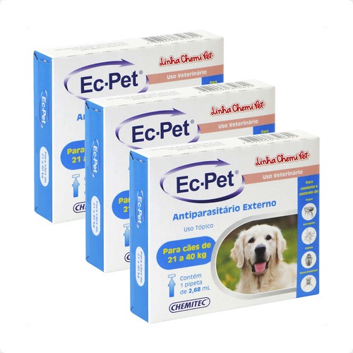 Kit 3 EC PET 2,68mL Chemitec Antipulgas e Carrapatos - Cães de 21 a 40Kg