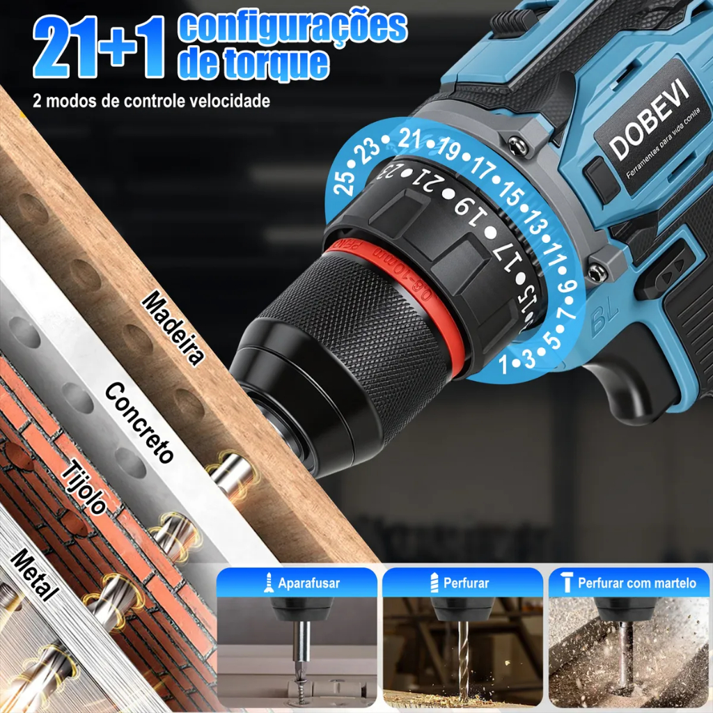 Kit 3 em 1 Ferramentas Elétricas Profissional com Bateria Dobevi – Furadeira, Esmerilhadeira e Parafusadeira de Impacto