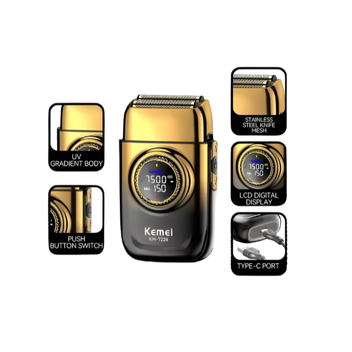 Kit 3 em 1 Máquina Profissional Kemei com base 8557 Sem fio Bivolt Recarregável USB