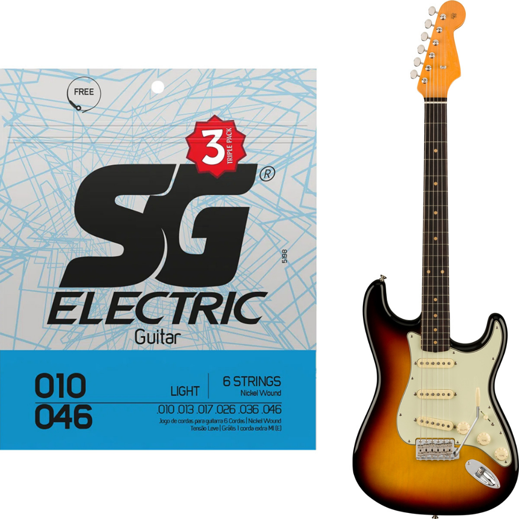 Kit 3 Encordoamento SG Guitarra 010 Níquel Triple Pack - Light