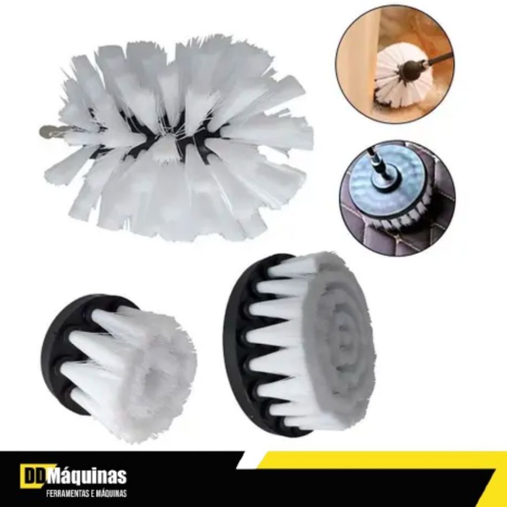 Kit 3 escovas macias de limpeza para furadeira e parafusadeira- Sigma