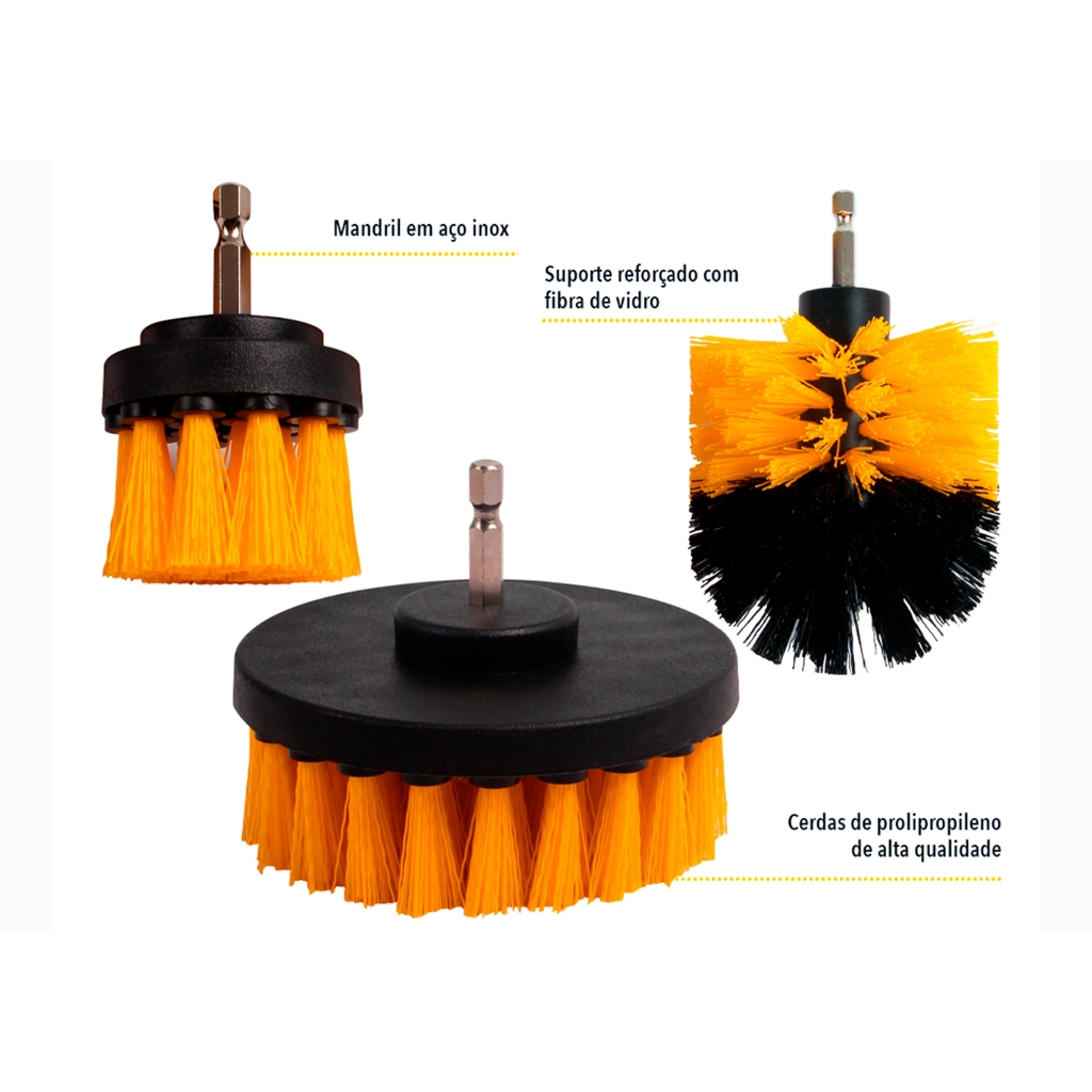 Kit 3 Escovas Rotativas Para Uso Em Parafusadeira/Furadeira