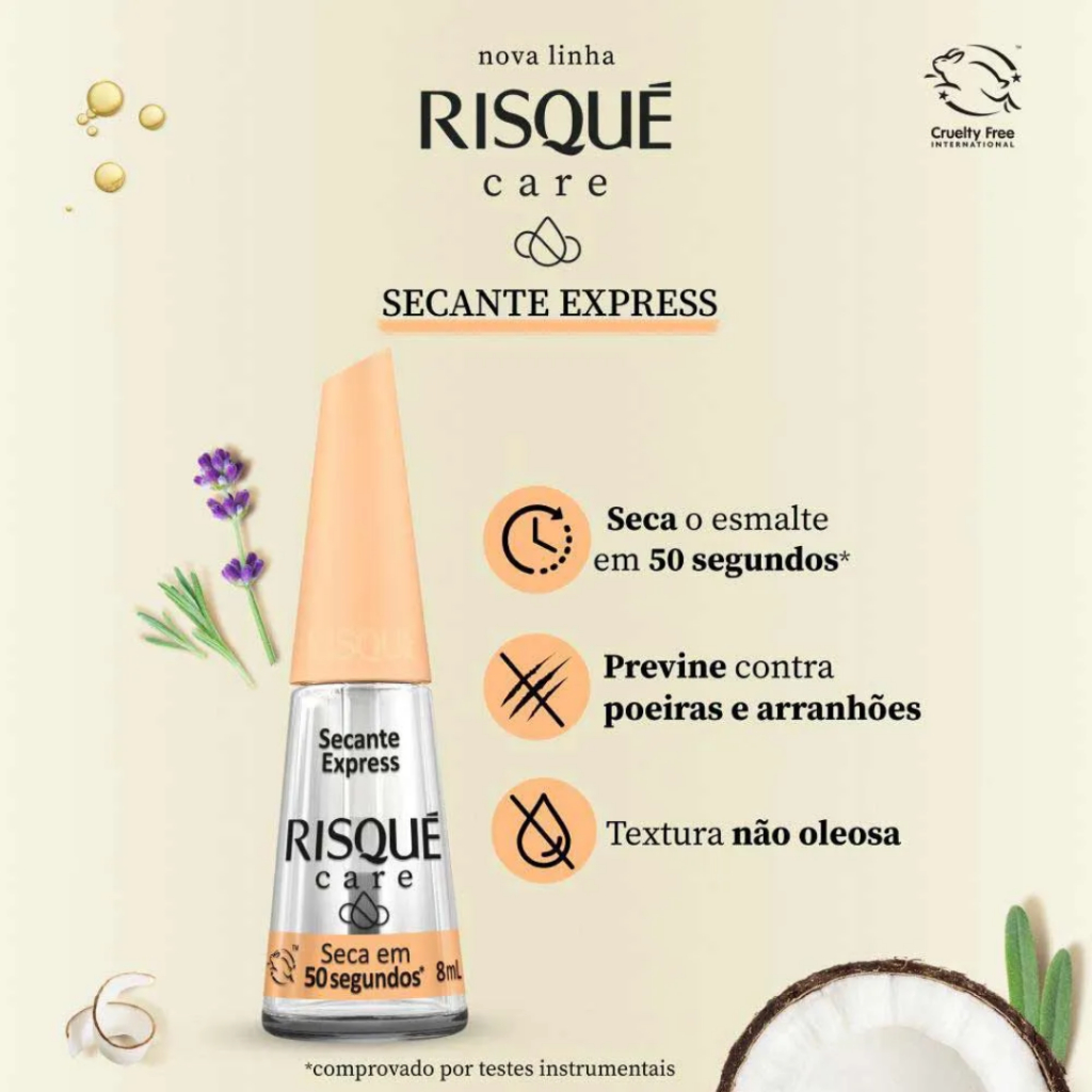 Kit 3 Esmalte Secante Express Seca Em 50 Segundos Risqué Care 8ml