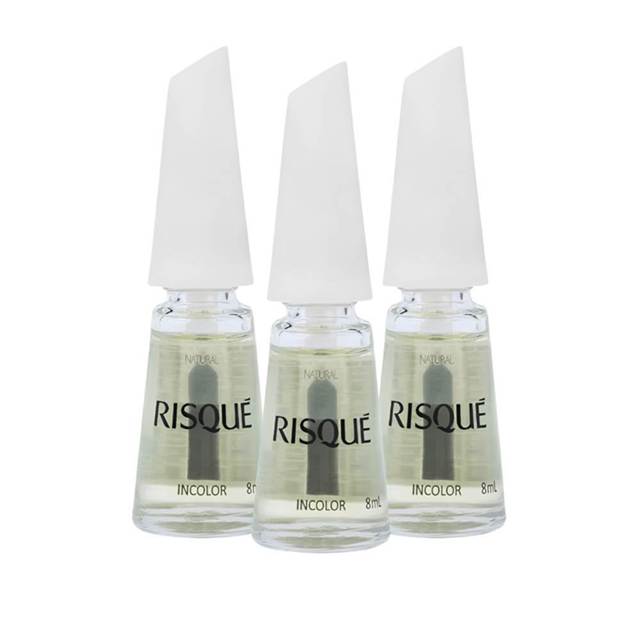 Kit 3 Esmaltes Risqué Natural Incolor Cobertura Hidratante Manicure
