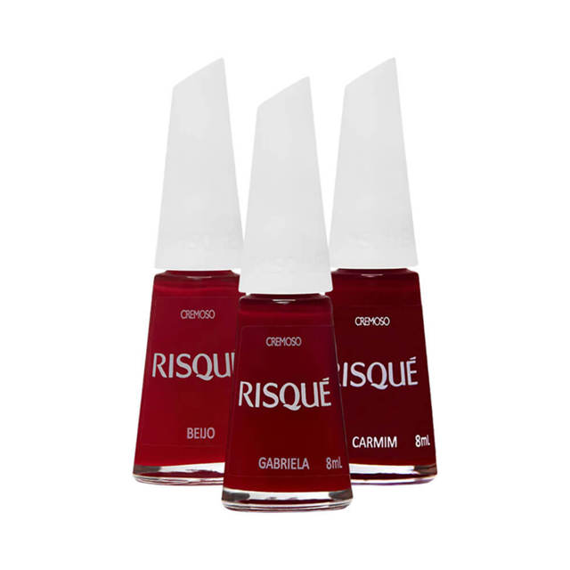 | Kit 3 Esmaltes Risqué Vermelhos Cremoso Hipoalergênico este produto | R$ 22,77 | — | 5.0/5 | 6 |