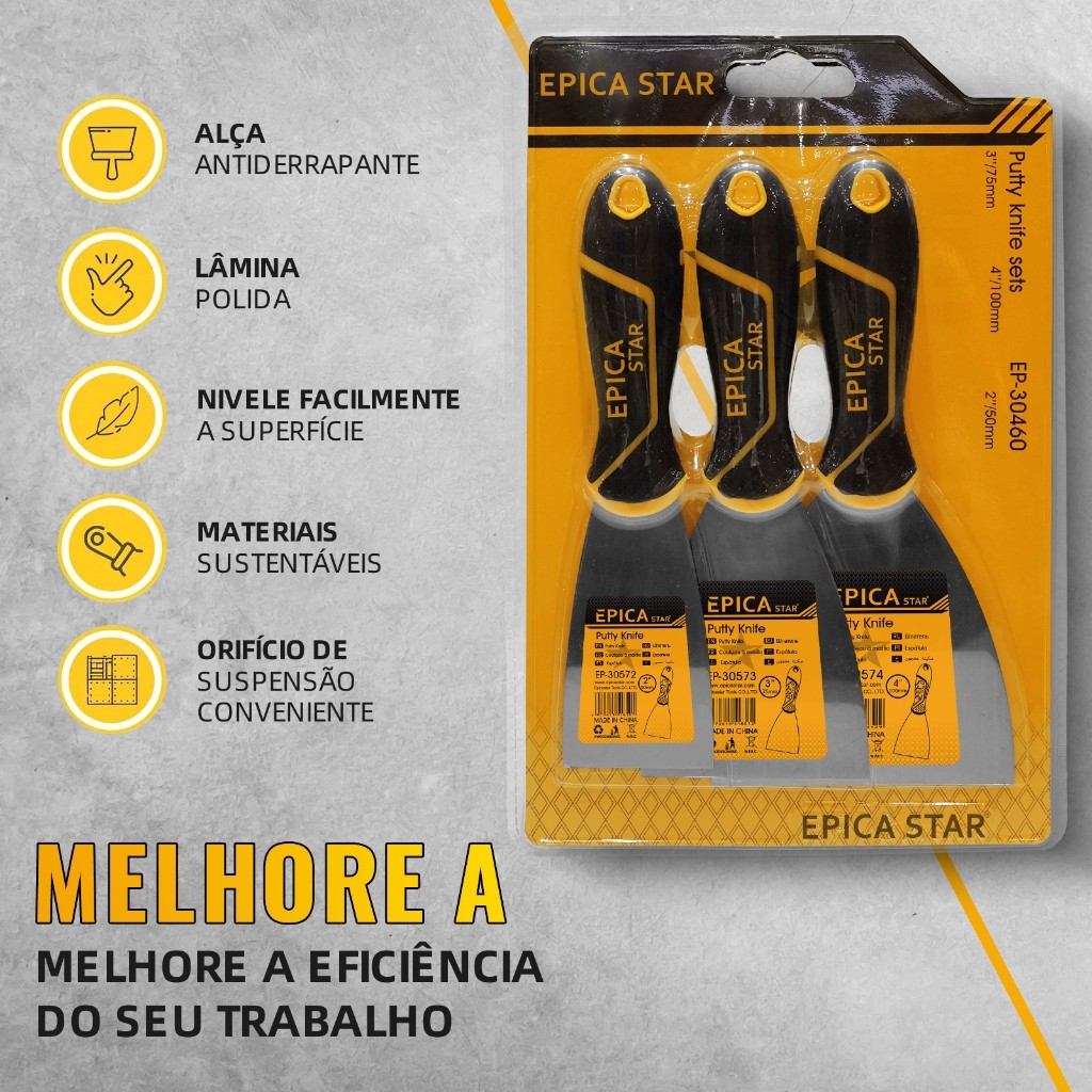 Kit 3 Espátulas Pintura - Lâminas Polidas e Alça Antiderrapante | Profissional e DIY