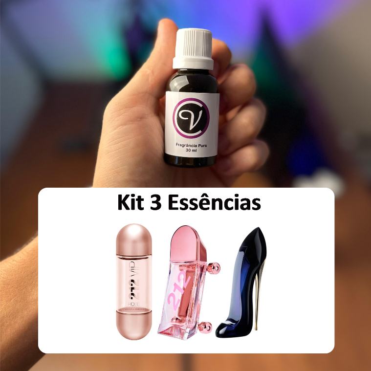 Essências Importada (quantidade 30ML Cada, Totalizando 90ml). Para comprar diversas fragrâncias, é só ir adicionando no carrinho. Você pode alterar a Fragrância do Kit comprando a última VARIAÇÃO. ESSÊNCIAS DE ALTA QUALIDADE. Desenvolvimento de alta similaridade e pureza. Vantagens de comprar essências de qualidade: - Confiança com seus próprios perfumes; - Matéria prima importada exclusiva; - Aromas agradáveis inspirado em grandes sucessos olfativos; - A melhor fixação, projeção e similaridade. Faça seu próprio perfume, com a concentração que deseja. Ideal para fazer perfumes, e também não impede você de fazer: colônias, sabonetes, aromatizadores, sachês perfumados, difusores elétricos, difusores de varetas, lembrancinhas e diversas outras coisas.