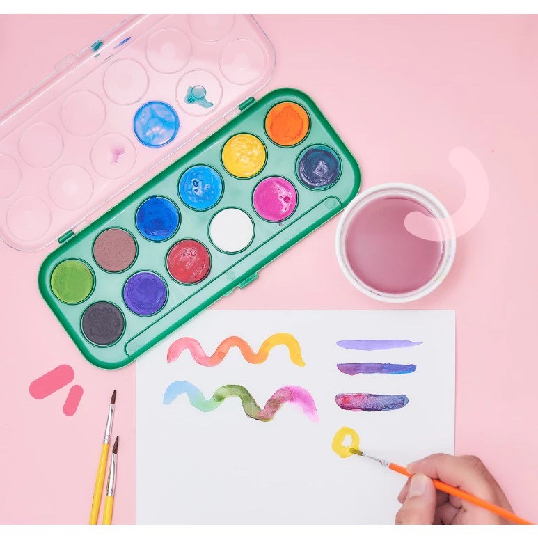 Kit 3 Estojo Aquarela 12 Cores Tinta e Pincel Para Personalizar Uso Infantil Escolar Leo&Leo
