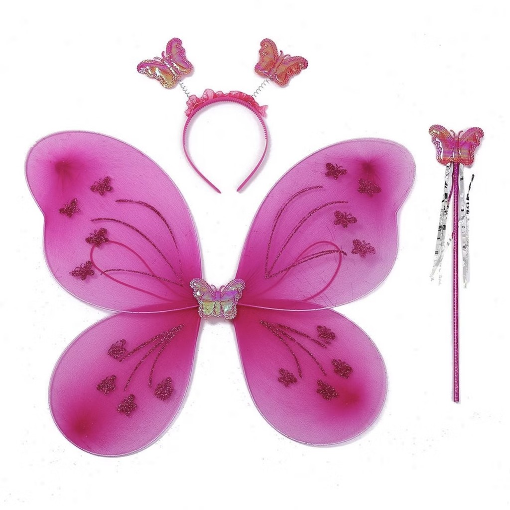 KIT 3 FANTASIA ASA DE BORBOLETA FADA INFANTIL+VARINHA+TIARA FESTA FANTASIA BALADA CARNAVAL 2025 (EX)