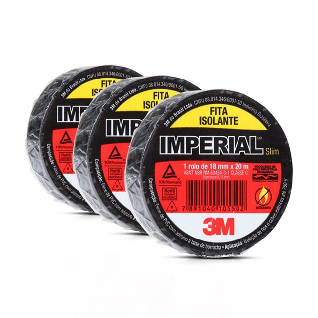 | Kit 3 Fita Adesiva Isolante 3M Preta 18Mm Imperial 20 Metros este produto | R$ 101,12 | — | 4.9/5 | — |
