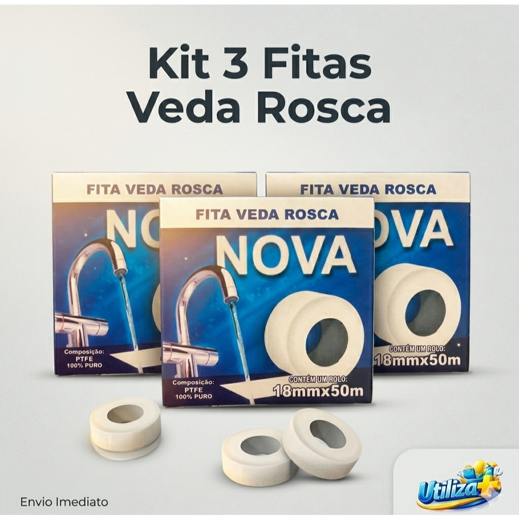 LEIA COM ATENÇÃO: Kit 3 Fitas Veda Rosca 18mm x 25m - marcas variam de acordo disponibilidade em estoque, porem a medida permanece a mesma. O Kit com 3 Fitas Veda Rosca Polyfita 18mm x 25m é ideal para garantir vedação eficiente e segura em instalações hidráulicas e conexões roscáveis. Produto resistente, fácil de aplicar e indispensável para uso residencial ou profissional. Especificações: Medida: 18mm de largura x 25 metros de comprimento; Contém: 3 unidades; Material resistente e de alta qualidade; Indicado para vedação de conexões de água fria; Marcas variam de acordo disponibilidade em estoque, porém a medida permanece a mesma! Benefícios: Excelente vedação contra vazamentos Fácil aplicação Alta durabilidade Ideal para uso doméstico e profissional Ótimo custo-benefício no kit com 3 unidades Indicado para: Torneiras Chuveiros Registros Tubulações roscáveis Reparos hidráulicos em geral 🚚 Produto à pronta entrega ⚡ Envio imediato após confirmação do pagamento Garanta já seu kit e evite vazamentos nas suas instalações! Qualquer dúvida estamos à disposição no chat 😊
