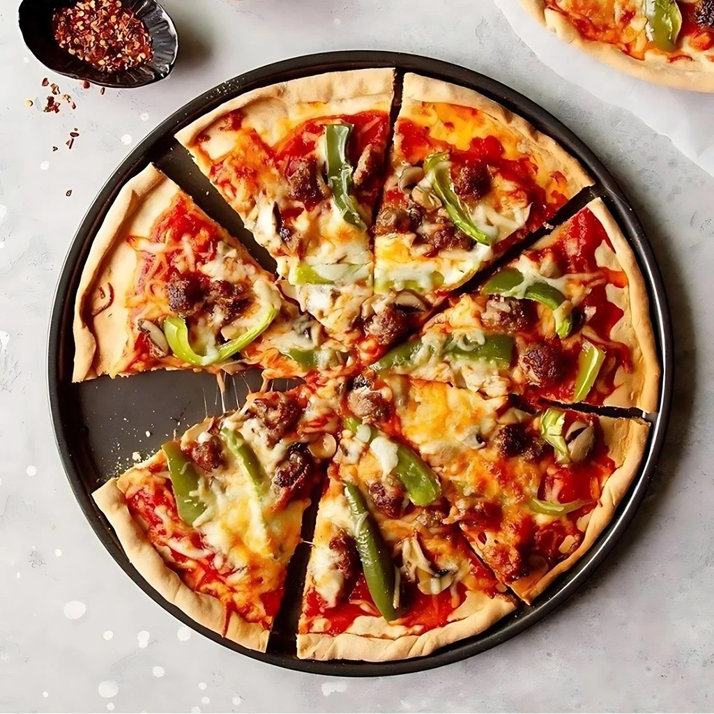 Prepare pizzas perfeitas com mais praticidade, crocância e sem bagunça! A Forma Antiaderente de 26cm é feita em aço carbono com revestimento em Teflon, garantindo que a massa não grude e que o calor se espalhe de maneira uniforme por toda a superfície. Resultado profissional direto do seu forno Ideal para pizzas grandes, massas finas ou recheadas Bordas crocantes e centro assado no ponto certo Revestimento antiaderente de alta qualidade – fácil de limpar e conservar Aço carbono resistente: durabilidade e desempenho superiores Especificações: • Diâmetro: 26 cm • Altura: 1,0 cm • Material: Aço carbono com Teflon • Cor: Cinza escuro ️ Instruções de uso (cura inicial): 1. Lave com esponja macia e detergente neutro 2. Seque completamente 3. Unte com um fio de óleo e leve ao forno por 2 minutos 4. Retire, espere esfriar e lave novamente – pronto para uso! Cuidados importantes: Não utilize utensílios de metal Não corte a pizza diretamente na forma Temperatura máxima recomendada: 250°C