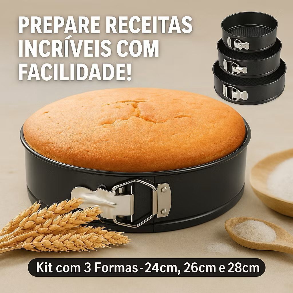 CONJUNTO COMPLETO: Inclui 3 formas com tamanhos variados (24cm, 26cm e 28cm) para atender todas as suas necessidades de confeitaria. FUNDO REMOVÍVEL: Facilita a retirada de bolos, tortas e cheesecakes sem danificá-los. MATERIAL ANTIADERENTE: Garante que os alimentos não grudem e facilita a limpeza. VERSATILIDADE NA COZINHA: Ideal para preparar uma variedade de receitas doces e salgadas. DESIGN MODERNO E PRÁTICO: Perfeito para trazer praticidade e modernidade para sua cozinha.