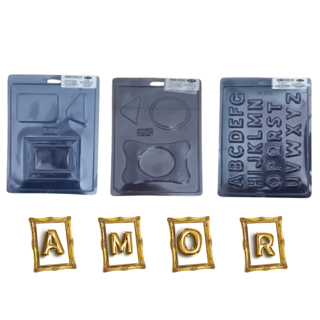 Kit 3 Formas De Acetato Para Chocolate 1 Alfabeto + Porta Retrato Oval + Porta Retrato Retangular