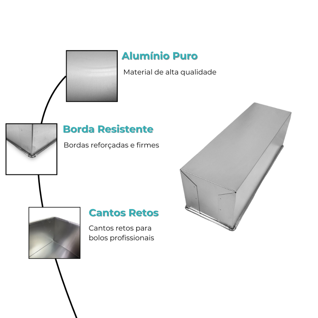 Kit 3 Formas Retangulares De Pão Bolo De Fatia 30X10X10 Alumínio Assadeira Alta Slice Cake