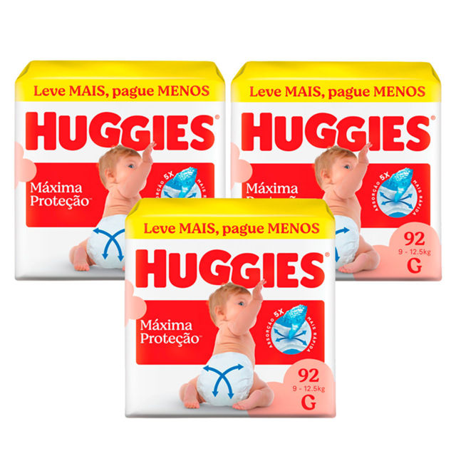 | Kit 3 Fralda Huggies Máxima Proteção Tamanho G 92 Unidades Descartá... este produto | R$ 308,97 | — | 5.0/5 | 1 |