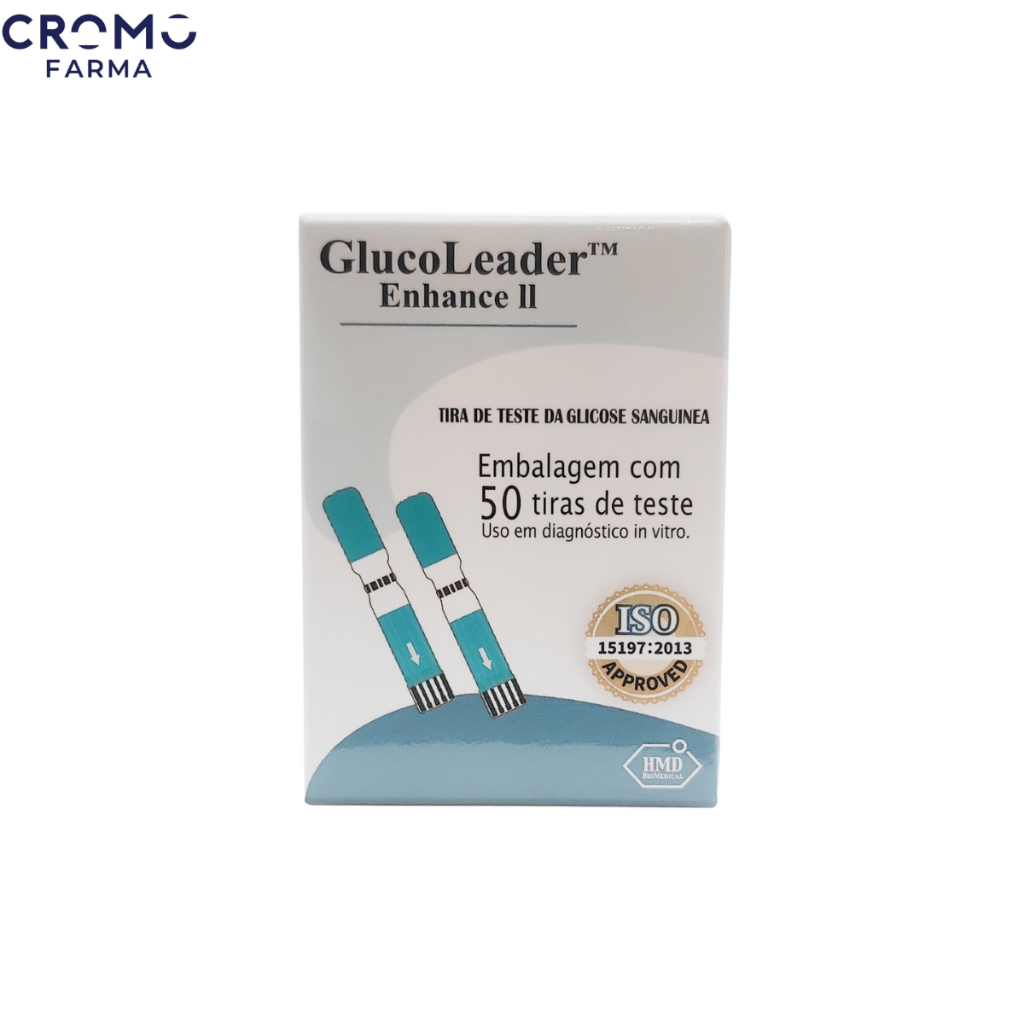 Este Kit Contém: - 3 Frascos de Tiras Reagentes GlucoLeader com 50 unidades cada (150 no Total) Descrição do Produto: Adequado para testar os níveis de açúcar no sangue. Seu uso é exclusivo com o medidor GlucoLeaderTM Enhance. Indicado tanto para uso domiciliar quanto profissional. VANTAGENS E CARACTERÍSTICAS: Flexibilidade: com design intuitivo, a amostra de sangue é facilmente absorvida pelas laterais da tira. Rapidez: dispensa chip de codificação e o teste é mostrado em 5 segundos. Acuracidade: tecnologia de enzimas GOD e GDH-FAD Armazenamento: resistente à temperatura e oxidação do ar, mediante armazenamento conforme instruções contidas no manual de instruções. Manuseio: fácil e prático. Volume da amostra de sangue: uma pequena gota já é suficiente para realizar um teste. Tipos de amostras de sangue: venoso, Arterial, Capilar e Neonatal. Como realizar um teste com o sistema GlucoLeader: 1) Lave bem as mãos com água e sabão. Seque bem. 2) Insira uma tira de teste cuidadosamente no medidor GlucoLeader (conforme seta indicadora contida na tira) 3) Com um lancetador e lancetas, faça a punção na ponta de um dos dedos para obter uma gota de sangue. 4) Após a sinalização no medidor de pronto para uso, aplique a gota de sangue em uma das laterais da tira. Em 5 segundos o resultado aparecerá no visor do medidor. Descarte a tira utilizada em local adequado. INFORMAÇÕES ADICIONAIS Validade: validade do produto impressa na embalagem Registro ANVISA/MS: 808671-5.0003; 808671-5.0011
