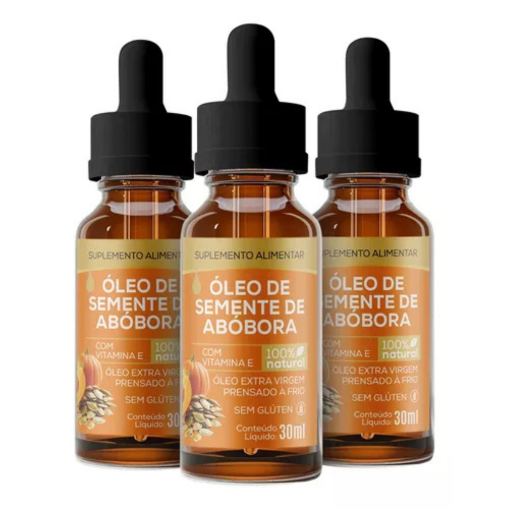 Kit 3 Frascos Óleo De Semente De Abóbora Em Gotas - 30 Ml
