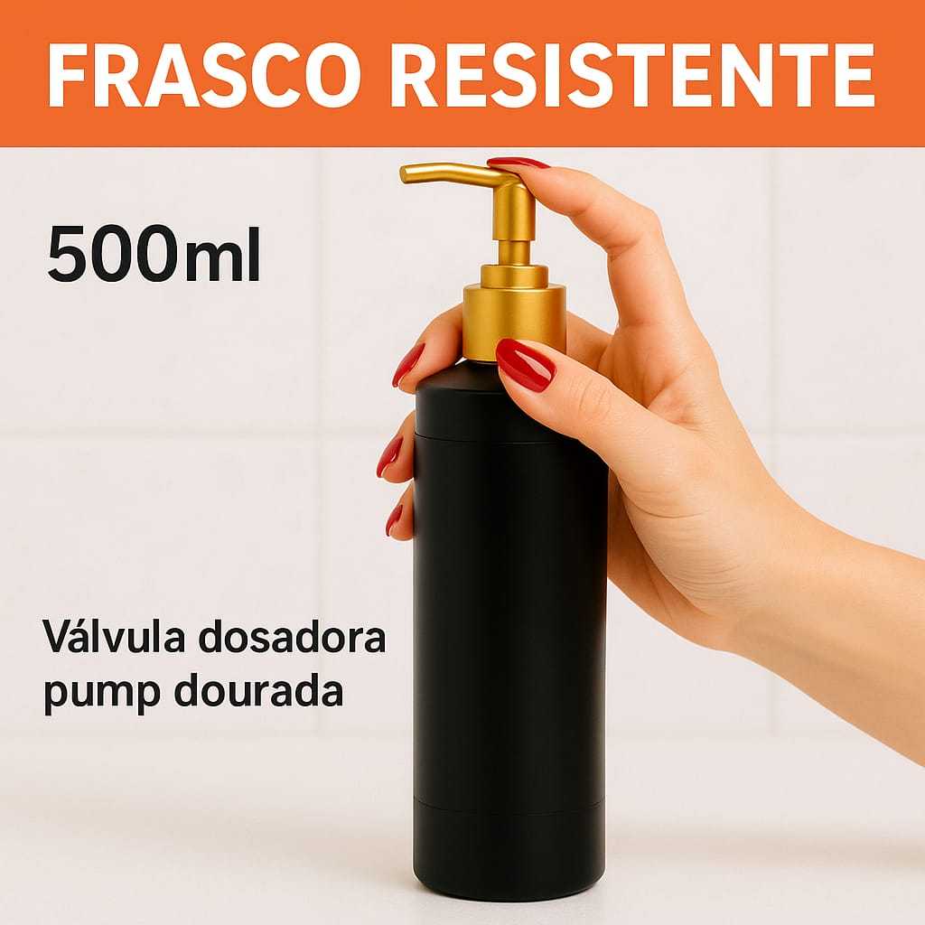 Kit 3 Frascos Pretos e Dourado 500ml com Válvula Pump Dourada Luxo Resistência Qualidade