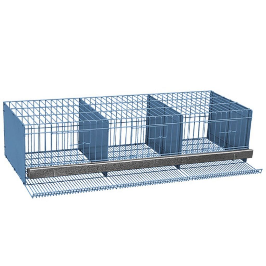 Comprimento.: 100 cm Altura.: 24 cm Largura.: 50 cm Largura útil interna.: 37 cm Opção em Cores.: (P058 – Alumínio) Composição.: Arame Galvanizado 2,00 mm x 2,70 mm Malha entre Arames.: 26 mm/ Piso 10 mm Divisão.: 3 Divisórias Capacidade total: 42 Codornas comuns ou 24 Codornas Gigantes. Contém Acessórios: Comedouro Chapa Aço Bebedouro Chapa aço CH058 – Chapa/Divisão: 4 unidades
