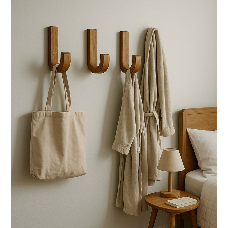 Kit 3 Ganchos De Madeira Pendurador Parede Cabideiro J