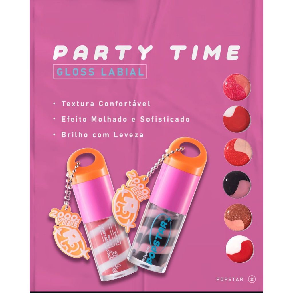 | Kit 3 Gloss Labial Party Time PopStar - Ruby Rose este produto | R$ 38,00 | — | 5.0/5 | 4 |