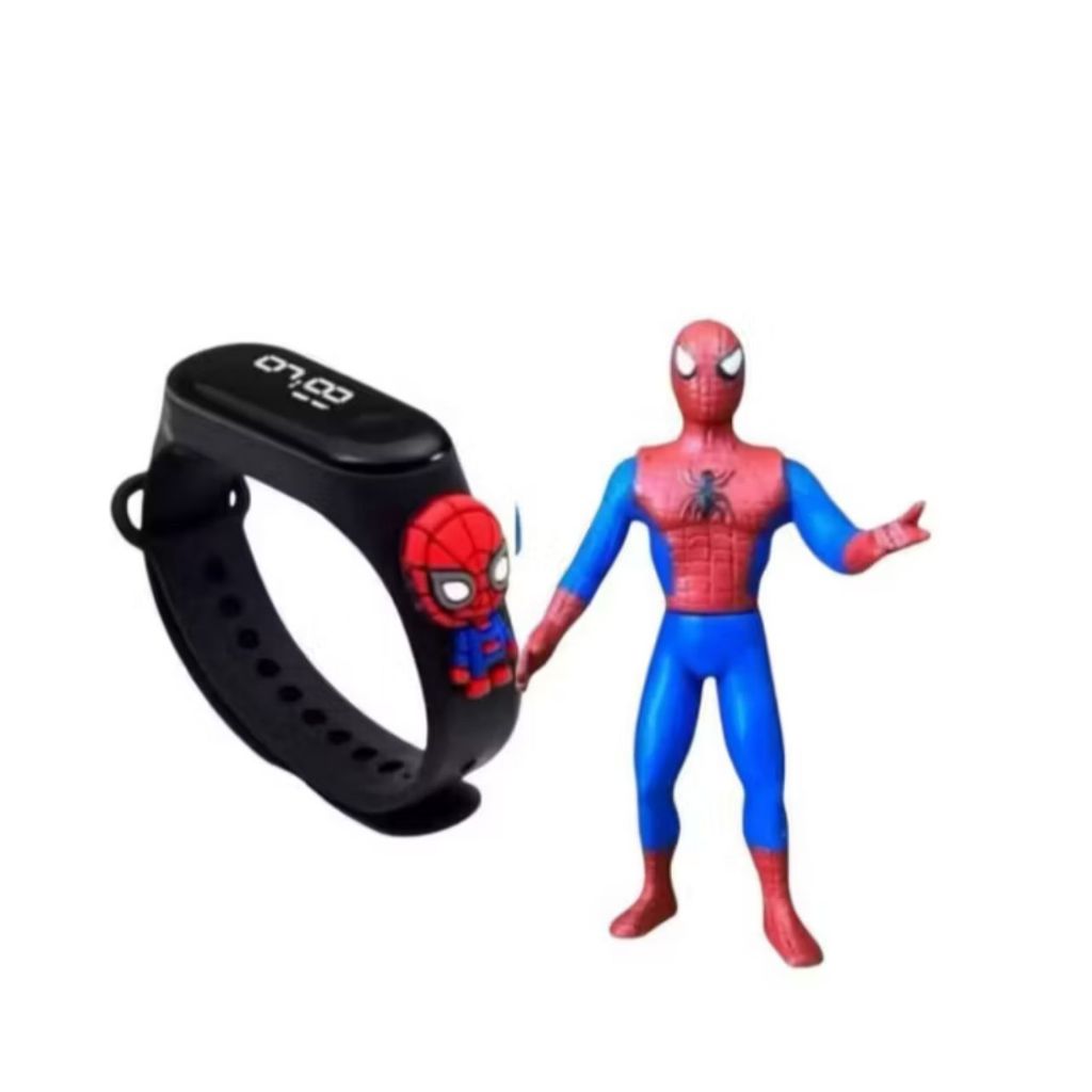 Kit 3 Homem Aranha, Bone + Boneco + Relogio Digital