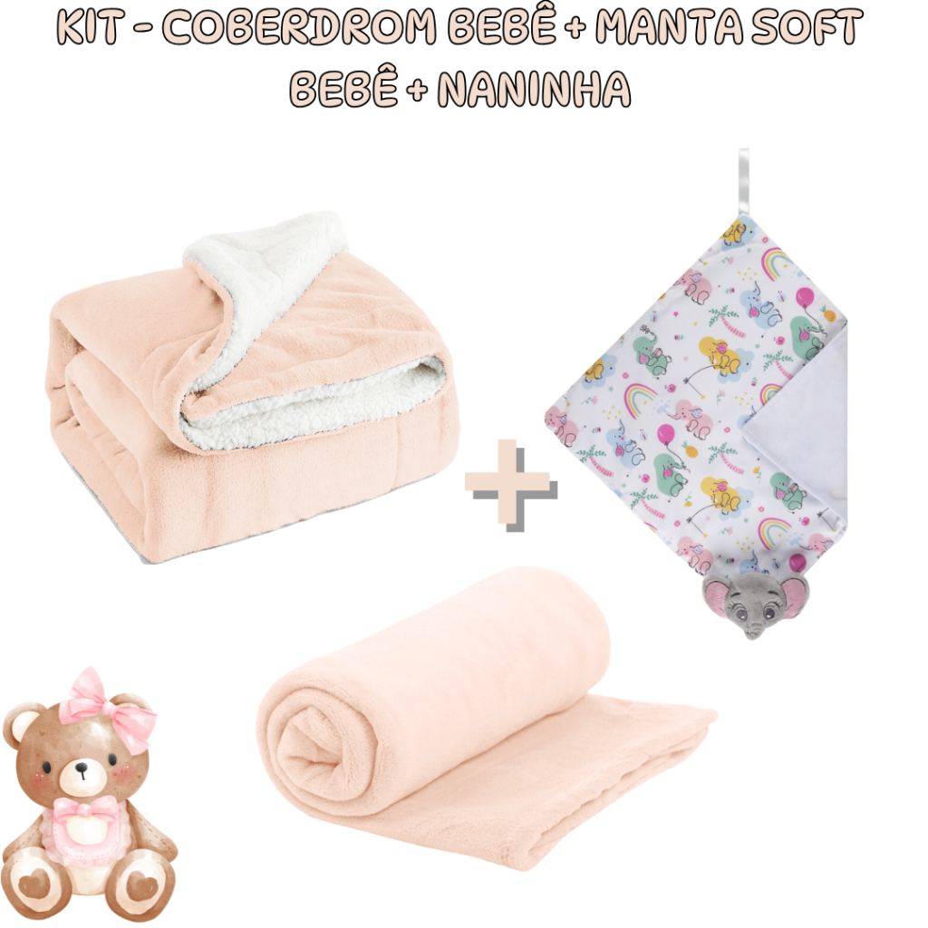 Kit 3 Itens Bebê - Coberdrom Sherpa + Manta Soft + Naninha Para Berço