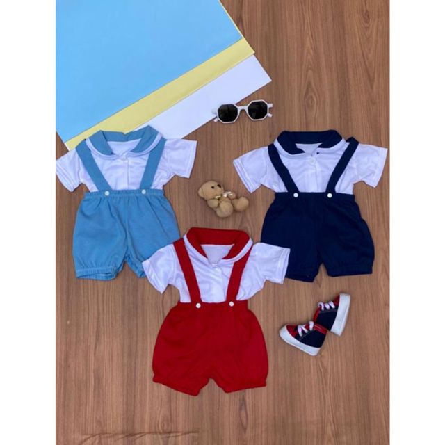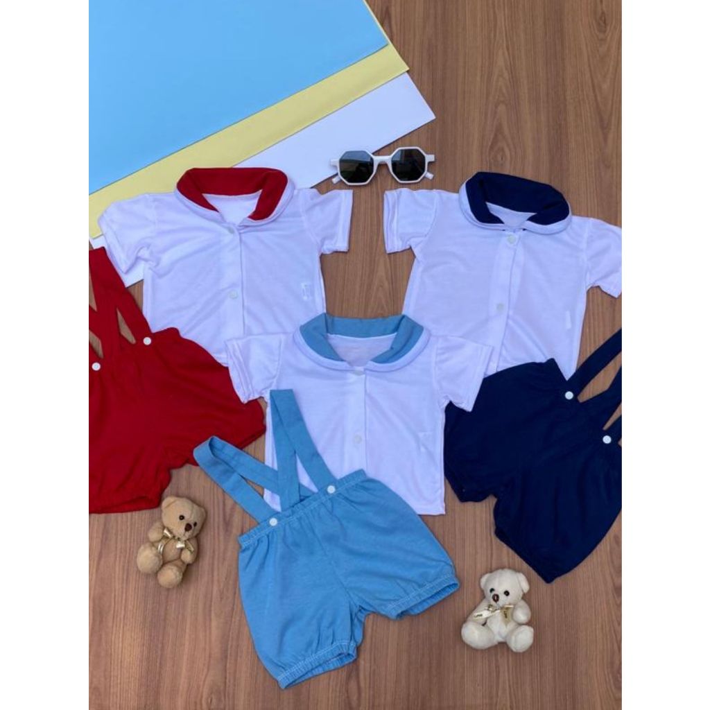 Kit 3 Jardineiras shorts com blusinha bebê recém-nascido 0-3 meses 6 peças príncipe