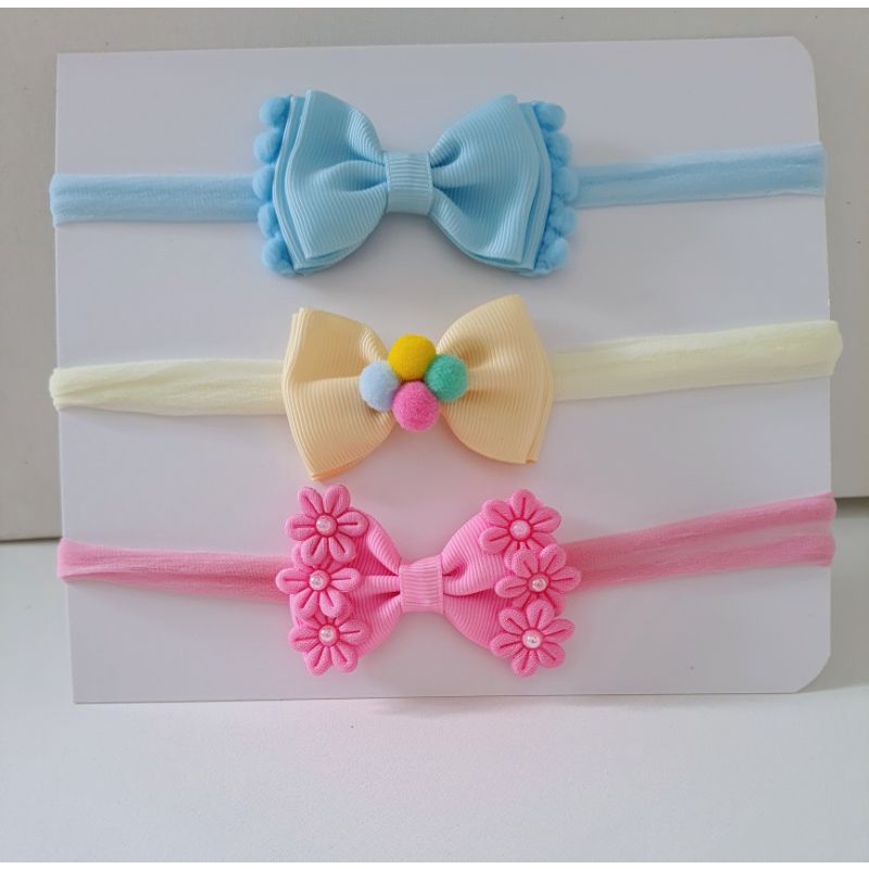 kit 3 laçinhos bebê recém nascida faixinha colorido de fita.