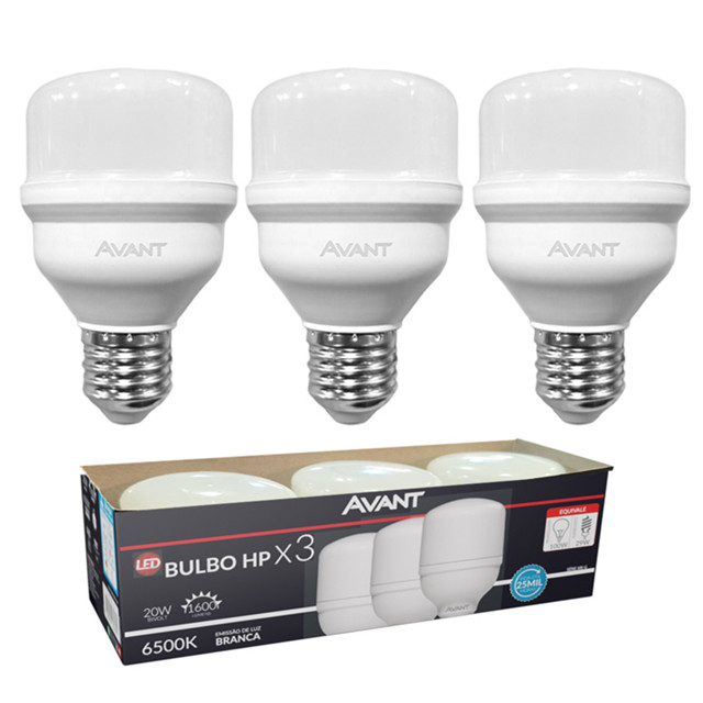 Kit 3 Lampada Bulbo 20W Luz Branco Frio 1600lm 127v 220v Soquete E27 Led Avan
