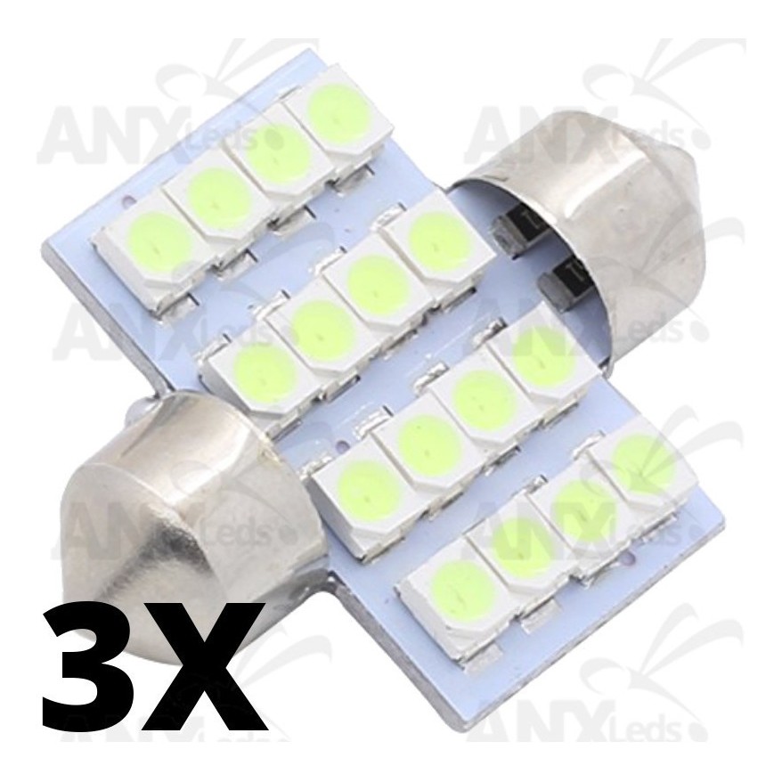 Kit 3 Lâmpadas Torpedo 16 Led Teto Honda Civic City Fit 31mm