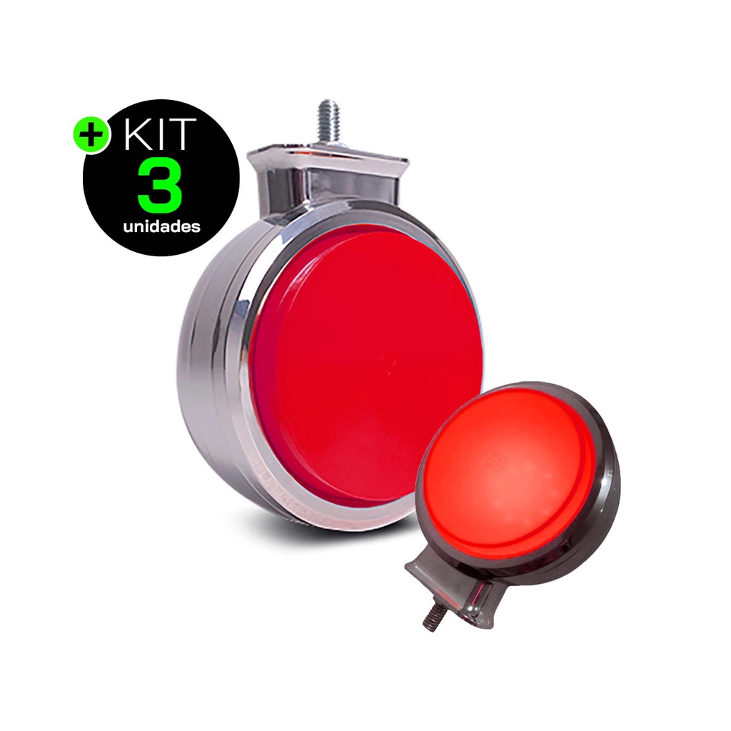 Kit 3 Lanternas Bojuda Foguinho LED Vermelha Cromada 12V 24V