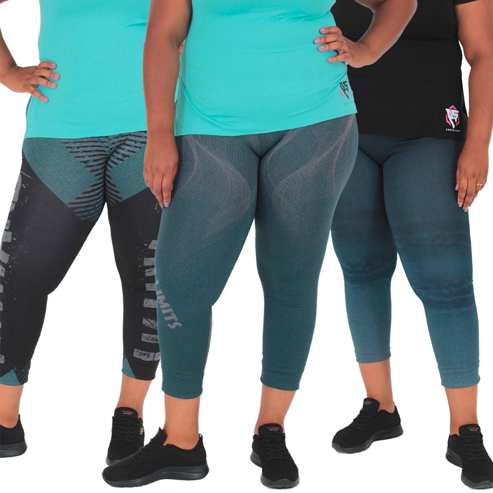 Kit 3 Leggings Feminina Plus Size Cintura Altissima Compressão PLUS