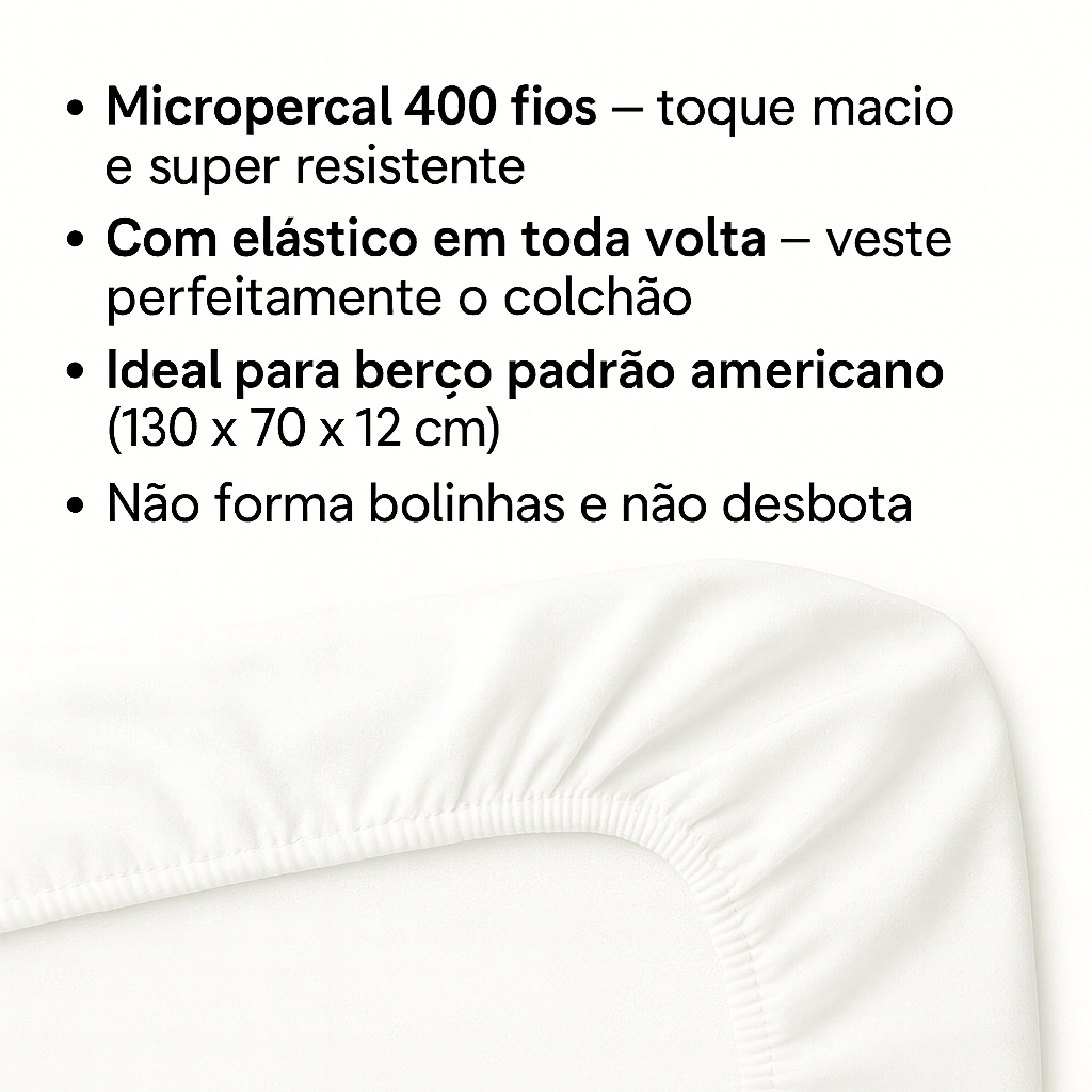 Kit 3 Lençol Berço Americano 400 Fios Micropercal Com Elástico Toda Volta