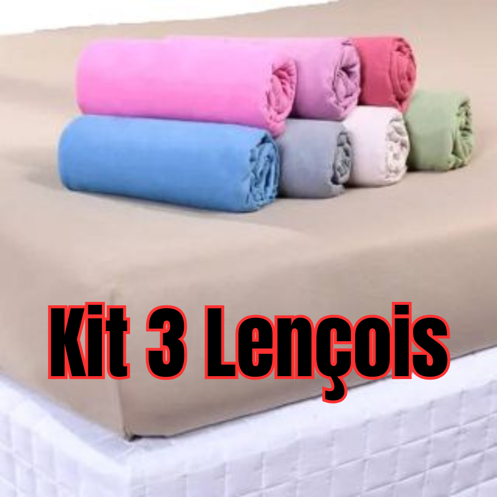 Kit 3 Lençol em Malha 100% Algodão com Elástico - Casal Solteiro Queen