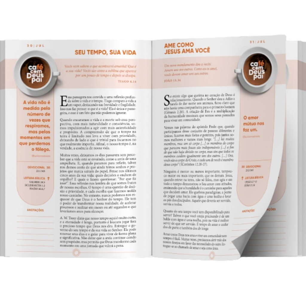 Kit 3 Livros | Coleção Café com Deus Pai | Porções de Paz + Transformação + Amor | Junior Rostirola Café com Deus Pai Porções Diárias De Paz: Essa é a experiência que você encontra em cada página de Café com Deus Pai. São 366 mensagens que te levarão a uma jornada com devocionais diários ao longo do ano, onde você é convidado a ter um encontro com Deus Pai. As páginas interativas irão envolvê-lo ainda mais nessa jornada, permitindo que você reflita, anote suas inspirações e compartilhe suas experiências. A cada dia, você encontrará uma mensagem única e significativa, especialmente selecionada para nutrir sua alma e fortalecer sua fé. Para tornar o seu dia ainda mais especial, frases inspiradoras são destacadas ao longo do livro, proporcionando motivação e encorajamento sempre que precisar. E para aqueles que desejam se aprofundar ainda mais na Palavra de Deus, também é incluso um plano de leitura bíblica, que o guiará por uma jornada de conhecimento e descoberta. Além de proporcionar um novo modo de apreciar uma xícara de café, este livro mostrará como a vida pode ser saboreada. Editora: Vélos Números de Páginas: 424 Café com Deus Pai Porções Diárias de Transformação: oferece uma jornada diária de devocionais que transformam o momento do café em um encontro íntimo com Deus Pai. Em cada página, você é convidado a parar, refletir e saborear não apenas a sua bebida, mas a vida com uma nova perspectiva. Descubra como esse encontro diário pode proporcionar conforto, clareza e um novo modo de apreciar cada instante. Editora: Vélos Números de Páginas: 424 Café Com Deus Pai Porções Diárias De Amor: Imagine parar por alguns instantes e desfrutar de um momento intimo com alguém que lhe ama e tem a resposta para todas as suas aflições. Esta é a experiência que você encontrará no decorrer destas páginas: uma jornada para todo o ano com devocionais diários, nos quais você é convidado a um encontro com Deus Pai que, além de proporcionar um novo modo de apreciar uma xícara de café, mostrara como a vida também pode ser saboreada. Editora: Vélos Números de Páginas: 424 Autor: Junior Rostirola Acabamento: Capa comum Dimensões: 16 cm larg. X 23 cm alt.