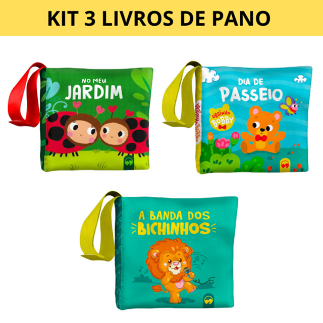 | Kit 3 Livros Infantis de Pano - Bebê Feliz - Jardim, Bichinhos, Pas... este produto | R$ 49,90 | 44% | 5.0/5 | — |